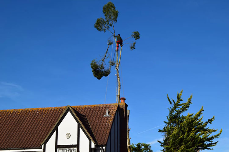 We removed this Eucalyptus tree in Stevenage, Hertfordshire due to damage to the foundations of the property. The tree was removed using a rigging system, enabling us to lower branches and logs safely to the ground to prevent damage to targets below. The stump was then ground down using our narrow access stump grinder, leaving the area reading for re-planting/landscaping.