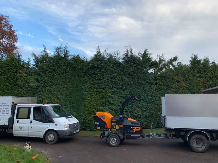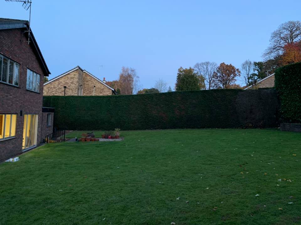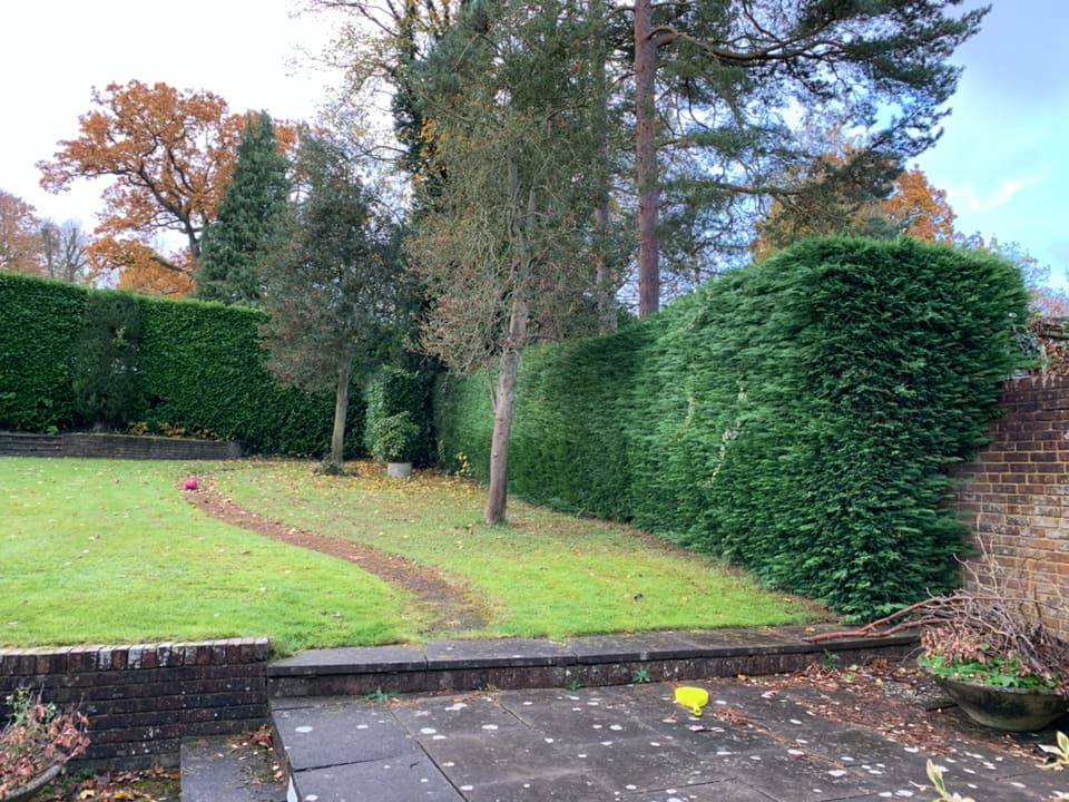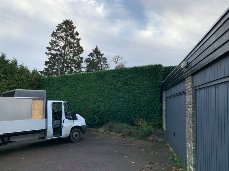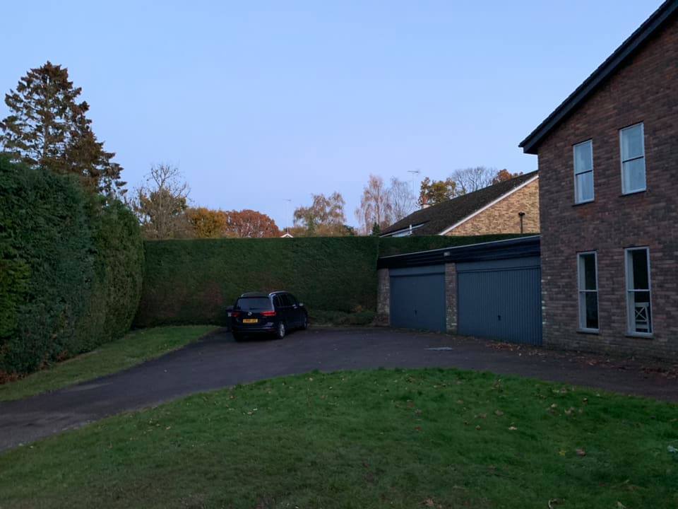 Conifer hedge trimming in Welwyn, Hertfordshire. These conifers were given an annual trim to make their appearance neat and tidy.